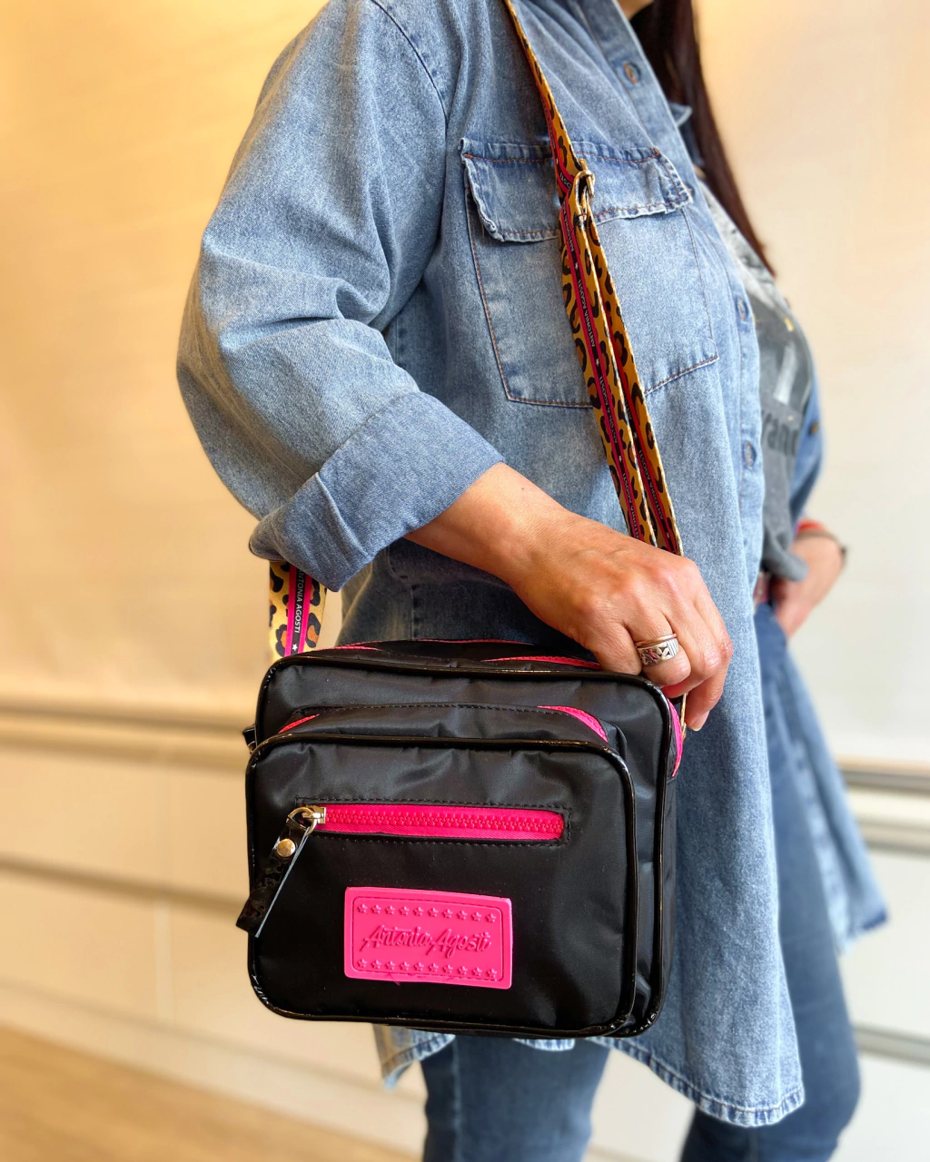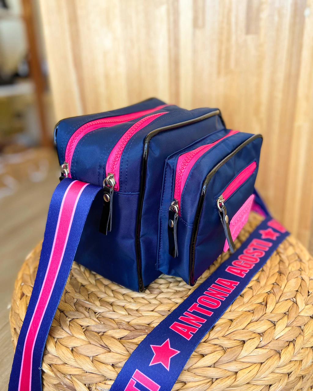 Bandolera Antonia Agosti de tela impermeable con doble acceso de cierre metálico... y una capacidad INCREÍBLE!. Posee un bolsillo frontal con fuelle y cierre metálico y otro bolsillo al corte con también cierre metálico para tener tus esenciales siempre a mano. Su correa sublimada es regulable para adaptarla a tu preferencia.