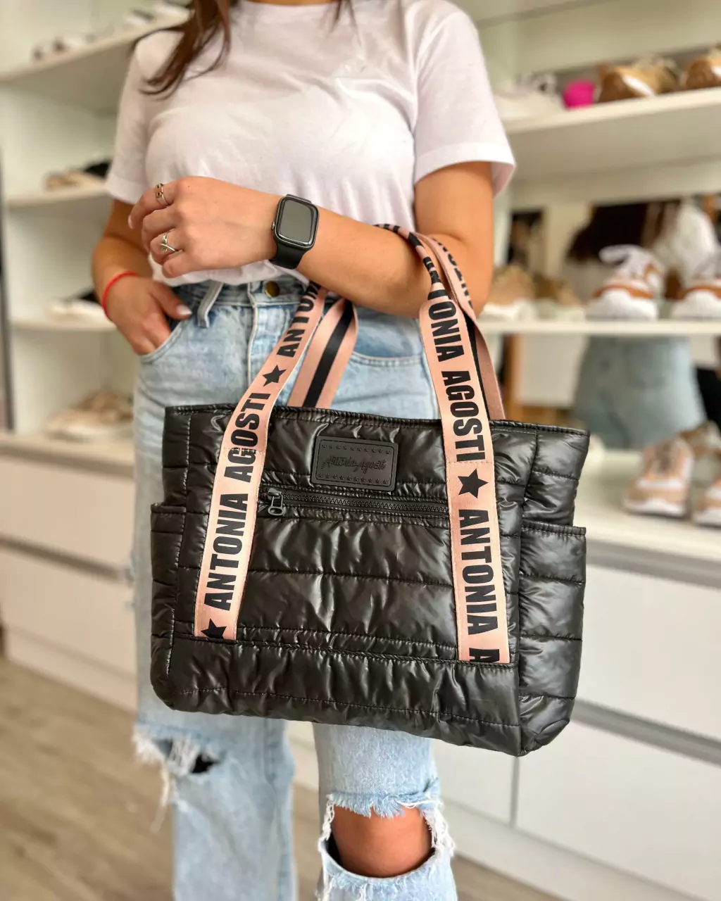 En su exteriori cuenta con bolsillos laterales frontales con cierre, perfectos para acceder rápidamente a tus elementos esenciales. Posee manijas diseñadas para que puedas llevarla cómodamente al hombro.