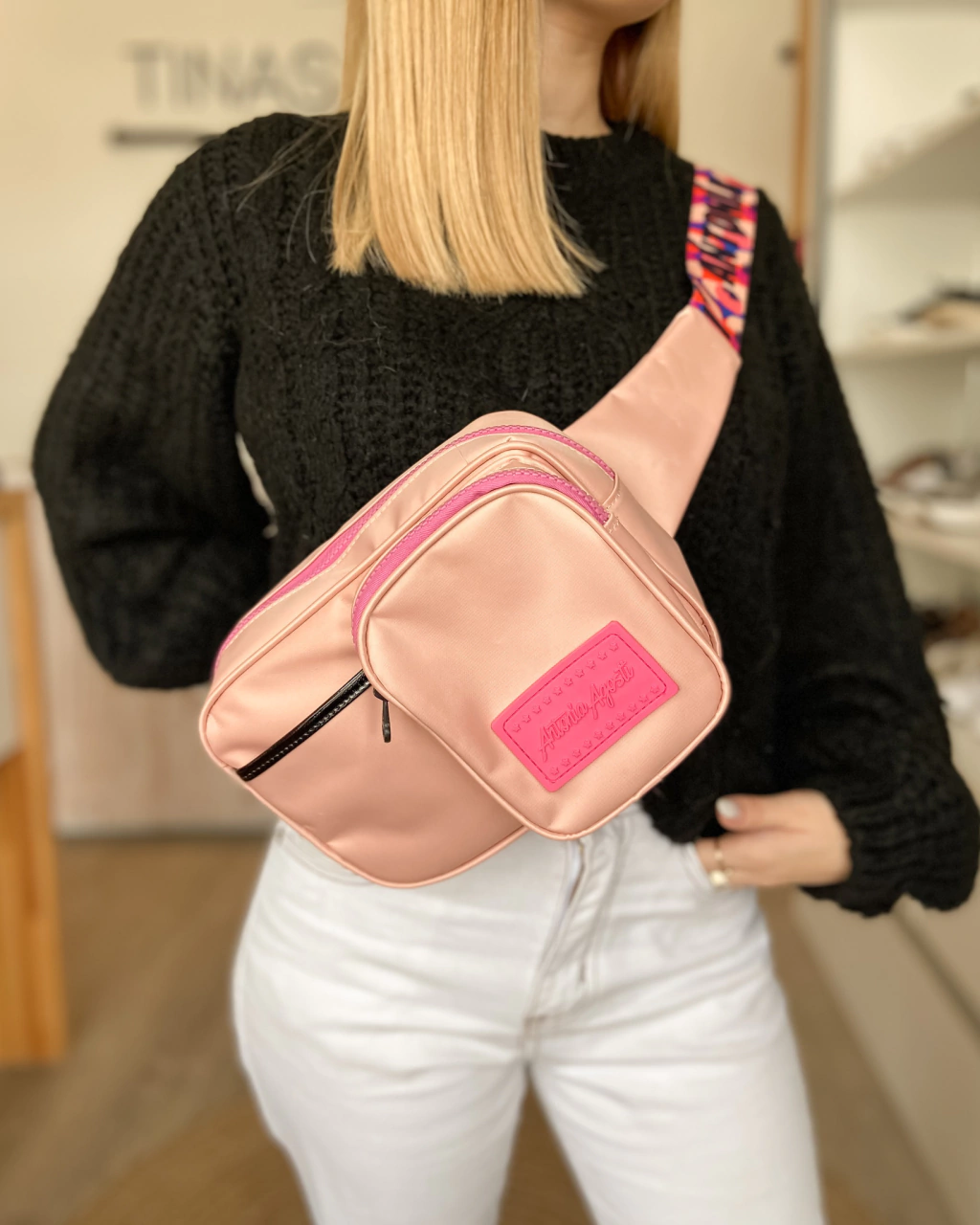 Riñonera Antonia Agosti confeccionada en tela impermeable, posee un compartimento principal y un bolsillo frontal con gran capacidad, y también un bolsillo ideal para cuardar tarjetas o papeles y tenerlos a mano! Su correa es regulable para adaptarla como vos prefieras.